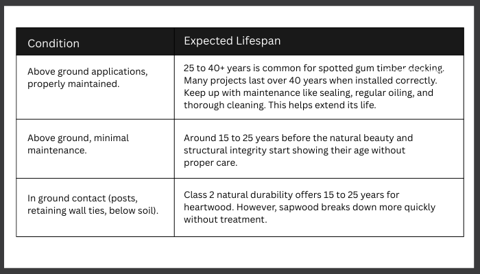 - Average Lifespan of Spotted Gum Decking