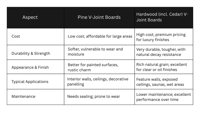 Are V-Joint Lining Boards Made from Pine or Hardwood?