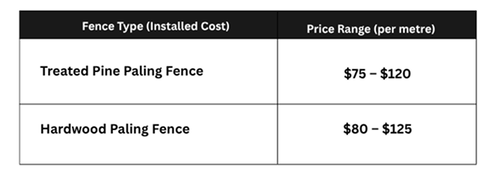 Hardwood palings give you a proper long lived fence, usually 20 to 30 years or more with proper maintenance. Softwood palings with treatment typically last 15 to 25 years at best.